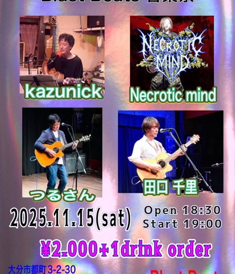 Blast Beats 音楽祭 11月 15 Sat 2025 mix [act] kazunick / Necrotic mind / つるさん / 田口千里 Blast Beats 音楽祭 date / 2025.11.15(sat) Open / 18:30 Start / 19:00 charge / ¥2.000+1drink order 前のスケジュール 次のスケジュール